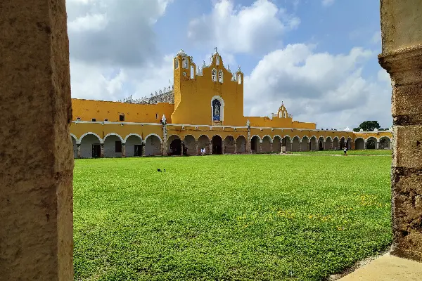 Conocida como la Ciudad de las Tres Culturas, hoy es la esencia del legado cultural del pueblo yucateco. En este sitio existen templos mayas y casas coloniales que te transportarán a los siglos XVI, XVII y XVIII. Su gente muestra con orgullo el sincretismo cultural del pueblo maya y se identifica la ciudad con el color amarillo. El atrio es la principal atracción de Izamal y es el segundo más grande del mundo después del Vaticano, recinto que fue visitado por Juan Pablo II en 1993 y desde entonces Izamal viste de amarillo lleno de fervor.
